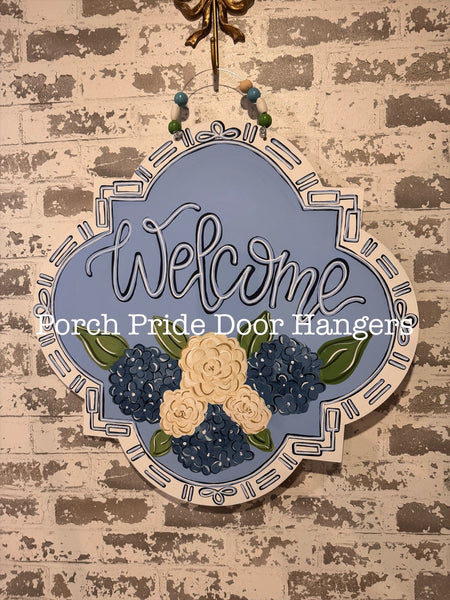 All hand-painted 1/4" birch plywood typically 22 inches across.  The perfect size for most doors.  Contact us for custom orders!